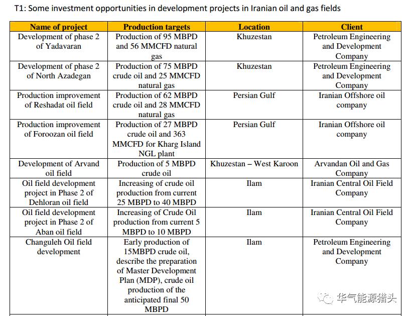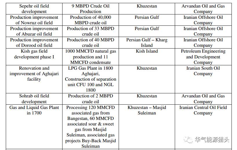 項目之一如:Development of phase 2 of Yadavaran,亞達瓦蘭(Yadavaran)油田二期,亞達瓦蘭(Yadavaran)油田位于伊朗西南部胡齊斯坦省的亞達瓦蘭,是世界上迄今為止最大的沒有開發(fā)的油田之一。